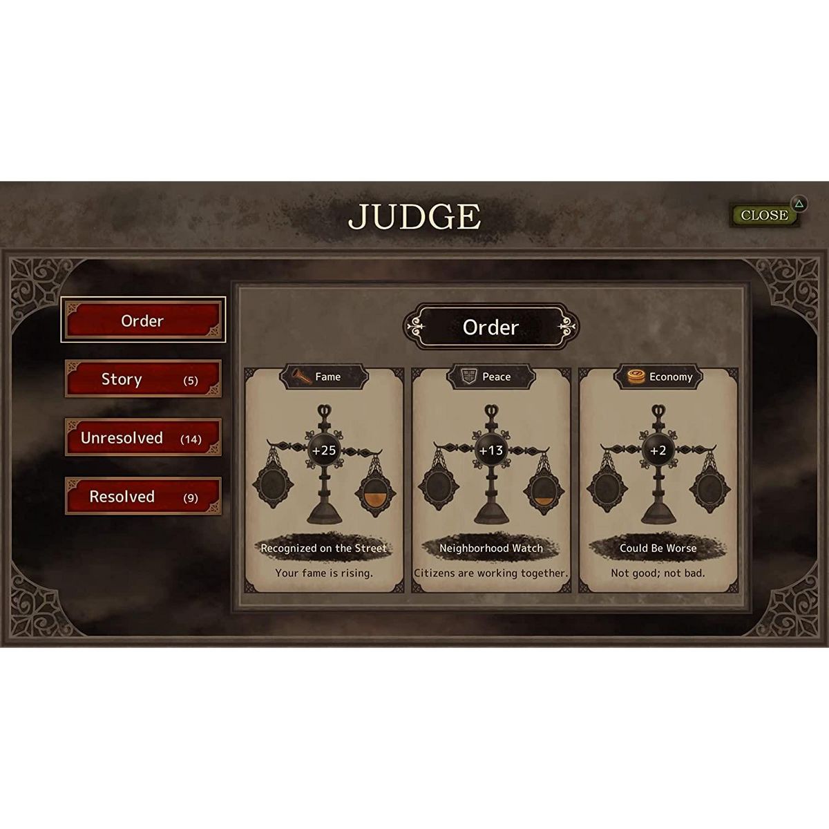 Guide the world toward the right direction through Judgments in Monochrome Order from Kemco and Limited Run Games for the Sony PS4, a fantasy RPG with multiple endings!The world must forever make choices. The Arbiters’ mission is to use the ancient magic known as “Judgement” to follow their own justice and guide the world to a better place.A newly-appointed Arbiter, is assigned to a desolate country where he will have to make various judgements. However, not everyone will agree with his idea of justice. When faced with two extreme choices, which will he choose?Your judgements will greatly affect the story and your character’s role in both good and evil paths. As there are multiple endings, explore different routes to guide the world toward the right direction!Get up to 18 allies from your Judgements to try various formations and overcome challenges with each character’s unique skillset.As the Arbiter of Aidycil, you deice whether to bring salvation or tragedy to the world... Will the hero's story be good or evil?Features:Battle - You can equip skills with Skill Orbs to power them up or give them unique effects.Party Members Galore - Gain up to 18 other party members from your Judgements and progression through the story.Limited Run - Region free. Includes a full-color manual and interior art. Limited to 1,500 copies available worldwide.Ultimate Replayability - After clearing one route, you may restart the game with the same strength to follow a new route.Multiple Stories with Multiple Endings - Your Judgements will greatly affect the story and your characters role. The more routes you explore, the more dark secrets of this intricate story you will uncover.