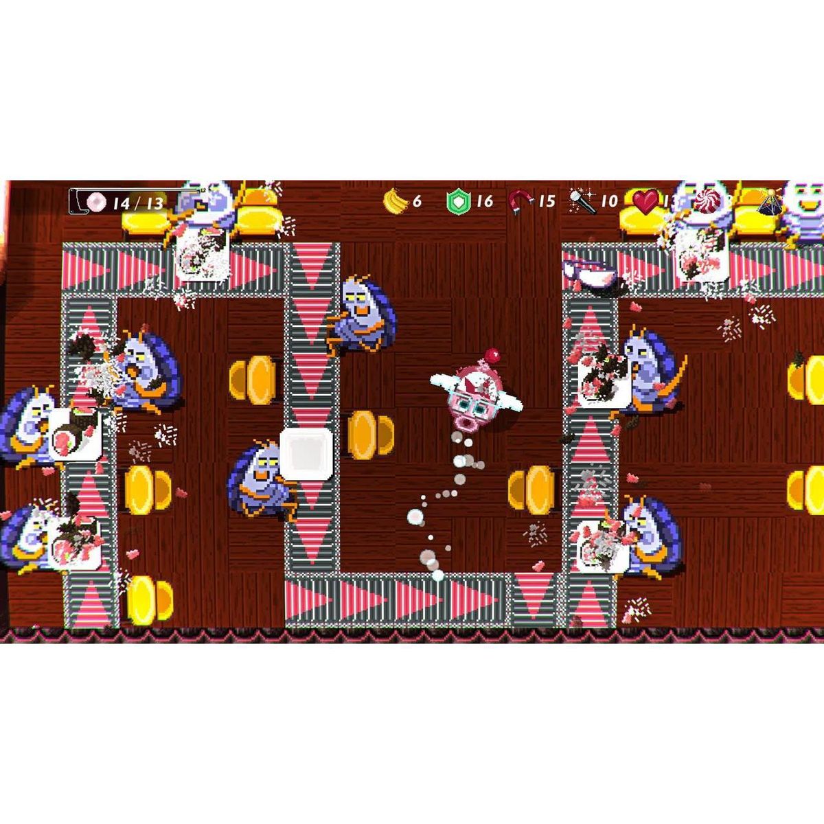 Pig Eat Ball from Limited Run Games and Mommy's Best Games for the Sony PS4 is an insane action adventure about eating, getting fat, and barfing on things!King Cake, the dessert-headed monarch, has decided it’s time for his daughter to get married, but she other plans!The King has devised “The Royal Games” in which the winner will marry Princess Bow. Since she can’t talk her father out of it, Bow decides to put on a disguise and enter the competition herself.Along the way, she discovers a nefarious plot that threatens all life aboard the Space Station Kingdom. Can she get to the bottom of things before it’s too late... and win the Royal Games at the same time?Serious Monkey BusinessWatch out…The Dean and his Pillbug henchmen will fight you every step of the way! The Dean's furious at King Cake and has big plans to overthrow the government. But what has King Cake done that has angered The Dean so much?Barf-centric PowersGet bigger as you eat. Barf to squeeze down to size. But you gotta eat all the balls to beat each level! Prioritize and strategize what to eat and where, and use that barf as a weapon! Barf on enemies to freak them out, dissolve them, or delight them!Get Those Mischievous PillbugsThwarting you at every turn are those dastardly, adorable Pillbugs trying to steal your balls! They’ll come as Drivers, Ballerinas, Cleaners, and Drinkers, but you can Smash em, Knock em, Barf em, and Burn em--find the dozens of ways to bop those cute meanies! Fight, eat, and solve your way through 200+ action levels using amazing, neo-arcade gameplay!Features:Incredible Soundtrack - Amazing tunes to get you into this surreal world!4-Player Party Mode - Grab some friends for outrageous game modes like BEER BASH, SCRUB FLOORS, SAMMICH STACKER, and plenty of others!Wild Characters - Talk to dozens of interesting aliens on your journey including Cupcake people, Scrounger Goblins, sentient shrimp, and of course your insane father King Cake.Explore Intricate Worlds - Giant interconnected overworlds are filled with strange life, and secret rewards. Travel to five completely unique areas including Sushi Gardens, Kitchen Chaos, and Astro Farm.Arcade Homages - Special levels twist gameplay from arcade classics into new, barf-covered action! Barf on ghosts, swap colored blocks, stack food, knock paddles, and break out in lively LAMPOONS on your favorites!Discover Unique Disguises - Every world has four massive sub-sections to explore; find hidden disguises to change your look AND your abilities. You’ll have to decide which disguise is best for each level as they all at least one PRO and one CON that changes your abilities!Huge Worlds, New Gameplay -FIGHT Pillbug Drillers, Bladewheels, Barf Goblins, Alien Goats, and Polarity Cats. Every new world has new, original gameplay and challenges! EXPLORE Sushi Gardens, Sports Barena, Outer Courts and more. Take down absolutely MASSIVE bosses to unlock the next world!