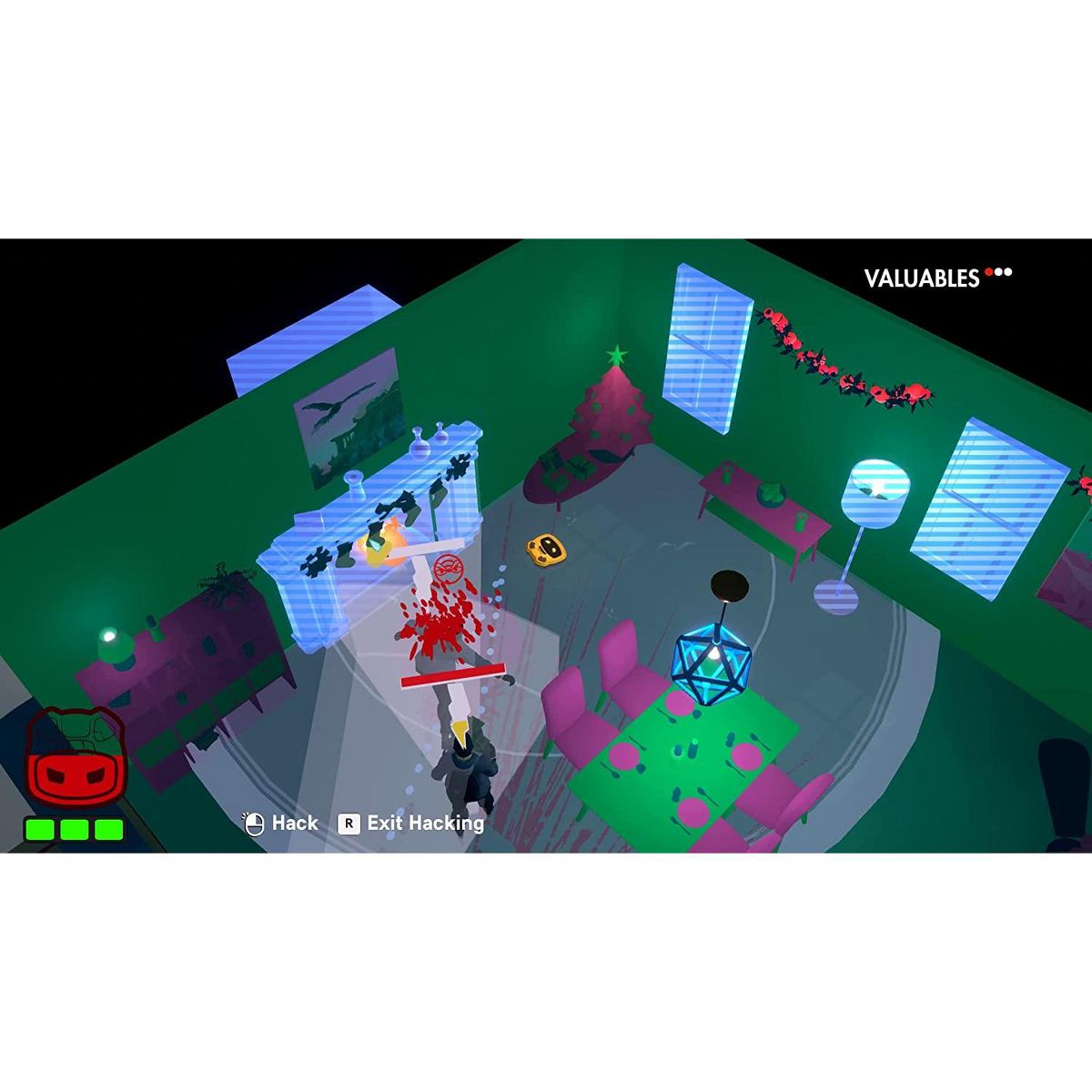 Roombo: First Blood from Samurai Punkand Limited Run Games for the Sony PS4 is a comedic, top-down, stealth-action game about being a robot vacuum cleaner and fending off burglars from your home.Hack smart-home gadgets like lights, doors and various appliances to set up traps, or improvised weapons from objects around the house. Hide under furniture, set your trajectory and plow into your enemies, knocking them over with such force that they go flying, then munch them up when they’re down.But make sure you don’t leave too much blood on the carpet, because you’ll need to make sure the house is clean before the family gets home. Only you can save Christmas and show these burglars that justice sucks.This is a short experimental game featuring 6 difficulty scenarios set in one stage and an unlockable gallery of concept art!Features:The prequel to JUSTICE SUCKS: RECHARGED.Hack smart-home gadgets like lights, doors, and various appliances to set up traps, or improvised weapons from objects around the house.Hide under furniture, set your trajectory, and plow into your enemies, knocking them over with such force that they go flying, then munch them up when they’re down.