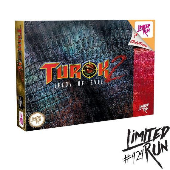 The dinosaur hunter returns in Turok 2: Seeds of Evil - Classic Edition from Nightdive Studios and Limited Run Games for the Sony PS4, the sequel to the hit game Turok.Turok 2: Seeds of Evil - Classic Edition includes Limited Run #424: Turok 2: Seeds of Evil for the PS4, Premium Embossed Foil Retro Throwback Collector's Box, Official Soundtrack CD, Commemorative Metal Retro Cartridge and an 18"x 24" Double-Sided Poster!Having defeated the Campaigner, Turok throws the Chronocepter into a waiting volcano to destroy it. Unfortunately, the blast awakens an even deadlier force - The Primagen.The Dinosaur Hunter ReturnsFight your way through 35 different types of enemies with bouncing bellies, blinking eyes, stretching tentacles and snapping jaws. From Prehistoric Raptors, to evolved Flesh Eaters, to your final battle with the Mother of all beasts— you’ll want to defeat all of them!Enemies are intelligent! They’re smart enough to attack in groups, to flee when they are outblasterned, and to take cover during a firefight.Enemies flinch and spasm differently depending on which body part you hit.Remastered LocationConquer 6 engrossing Quest Levels including the Port of Adia, the Death Marshes and the Lair of the Blind Ones.Over 20 WeaponsUnload multiple ricocheting shotblaster shells with the Shredder.Send brains flying with the skull-drilling Cerebral Bore, a fan favorite.Stomp enemies flat while riding an artillery-mounted Triceratops! Once again a Turok is tasked with restoring peace to the land and stopping the Primagen from merging Earth with the nether world!Features:Turok 2 will transport players into sprawling environments with vicious enemies lurking behind every corner.Conquer 6 engrossing Quest Levels including the Port of Adia, the Death Marshes and the Lair of the Blind Ones.Turok 2: Seeds of Evil is on a region-free physical disc for the Playstation 4. Also works on Playstation 5. Includes a full-color manual.
