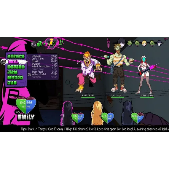 Journey with a crew of half-zombie girls and survive in the post-apocalyptic world of Undead Darlings: No Cure For Love from Sekai Project and Limited Run Games for the Sony PS4!What is Undead Darlings?Journey with a crew of half-zombie girls as you crawl through dungeons, beating up twisted creatures that were born from the fall of society in fast-paced turn-based RPG combat, and ultimately deliver the only known cure for what ails your party members to a place where it can be mass produced!Story driven portions of the game contain a multitude of branching dialogue paths that, based on the choices you make, gives deeper insight into the different characters, while the RPG portion of the game uses a familiar but refined turn-based battle system with unique twists. Both of these gameplay features are contained within a first-person perspective dungeon crawler with dungeons built like mazes and filled with traps and hidden paths. StoryReginald "Reggie" P. Happenstahnce wakes up from an alcohol-related coma (courtesy of his own father, no less) by his childhood friend, Pearl, and is told that society had crumbled due to a virus outbreak that turned most everyone into zombies while he was sleeping. This includes Pearl herself. However, Pearl has managed to hold onto her human conscience, and she relates that she is not the only one in a similar state. As with every half-zombie Reggie will run into, she may be undead, but her heart is still human.Your role as Reggie is to be the girls’ loot donkey and carry the things they find in dungeons. Since Reggie is a human, the girls will prevent him from getting infected by fighting in the front lines! Go them!While on this adventure, you will learn more about the undead girls' lives from before the outbreak, but whose tale you will hear is based on the choices you make during the visual novel scenes.Perhaps one of them will connect with you, open up about their hardships, and maybe even develop romantic feelings... The ultimate result of these interactions will determine whether or not any of these girls trust you enough to take the biggest risk of their undead lives—volunteer to be the first test subject for your father's cure!Features:Undead Darlings ~no cure for love~ is on a region-free physical disc for the Playstation 4. Also works on the Playstation 5.Explore a multitude of complex post-apocalyptic dungeons—a total of over 20 huge floors to explore! Discover loot, secret event scenes based on your current battle party, and more!Become invested in a novel-sized epic adventure—a script of over 300,000 words and more branching dialogue choices than you can shake your boomstick at await! The adventure is filled with comedy, slices of romantic life, and the horrors associated with surviving the zombie apocalypse from a zombie’s perspective!Key events give you the chance to grow closer to the girls, and by doing so, you will access specific character story arcs that come with gorgeous HD images of the characters for you to unlock! Over 20 unlockable images in total—gotta collect 'em all!Six playable, awesome half-zombie girls lead the charge!Nine endings based on your choices and how close you grow with the characters!No currency or stores exist in the post-apocalypse, so you will need to fill up your war chest by finding loot in dungeons. Be careful, though—weaponry will break if used too much!Exploit multiple enemy weaknesses simultaneously in the unique Exponential Exploitation battle mechanic! Increase your damage multiplier and utilize it for a one-time attack that can deal tremendous damage! Set up custom battle strategies with the Macro function! Use this wisely in tandem with the EE System to create efficient tactics against your current roster of foes!