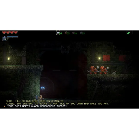 Batbarian: Testament of the Primordials from DANGEN Entertainment and Red Art Games for the Sony PS4 is a snarky action-adventure puzzle game with a good dose of humor.*Crash* ...That was the sound of you landing face first in an abyss filled with monsters, traps, and eldritch secrets. But hey, it's ok barbarian, you are not alone: Pip, your best friend -and mysteriously luminous bat- is with you. And it's only by truly working together that you'll be able to solve the abyss' puzzles, fight off its hungry denizens, discover its true purpose and maybe -just maybe- make it out alive with the secrets of the primordials.Explore hundreds of secret-filled rooms, fight big bosses, gather companions for your party and use the powers of Pip -your bat buddy- to solve puzzles and escape the eldritch abyss!Features:Gain new skills for your barbarian and elemental powers for Pip, the (magic) bat!A narrative-driven metroidvania with dialogue choices and plenty of humor and snark.Big numbers! 400+ rooms, 20+ hours of evolving gameplay, 10+ boss, 60+ minutes of music and almost 30,000 words of text that a barbarian would never bother to read!Puzzles.RPG elements with a level-up minigame.Contains more fruit throwing than probably any other game.Companions that join you in your quest and help you out in fights.Multiple endings based on your choices and actions.The thrown fruits are NOT wasted, they are eaten by the bat (who is magic).A ton of secrets and hidden loot just about everywhere.The (magic) bat has a whopping FIVE different squeaking sounds!Fewer repetitive jokes than this description has.