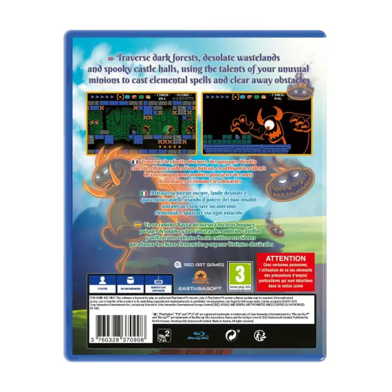 Ravva and the Cyclops Curse from Red Art Games and eastasiasoft for the Sony PS4 is a short 8-bit platform adventure inspired by classic NES games, both in art style and gameplay.You’ll meet Ravva, a young summoner apprentice who is now in a desperate situation. The child’s mother is a powerful summoner, but then a terrible foe emerged: the Cyclops Lord. After an intense fight, he stole the summoner's powers and cast a terrible curse upon her! Now little Ravva must gather all courage available to face a dangerous journey to face the Cyclops and end the curse.The game will take you through various stages with challenging designs, all of them aiming to test your skills and courage. Use 4 different types of summons to defeat foes and overcome obstacles, each minion being better suited for specific tasks. Find power-ups, scores and secrets around the stages while facing unique enemies and hazards. The game is inspired by classic NES games, including charming art style and fair challenges!Features:Enjoy cute and creative pixel art animations.Locate and collect power-ups and hidden secrets!Explore 10 action-packed levels inspired by 8-bit classics! Face a wide variety of enemies and environmental hazards.Summon 4 types of companions, each suited to different tasks.Solve puzzles and overcome obstacles with the help of your minions.