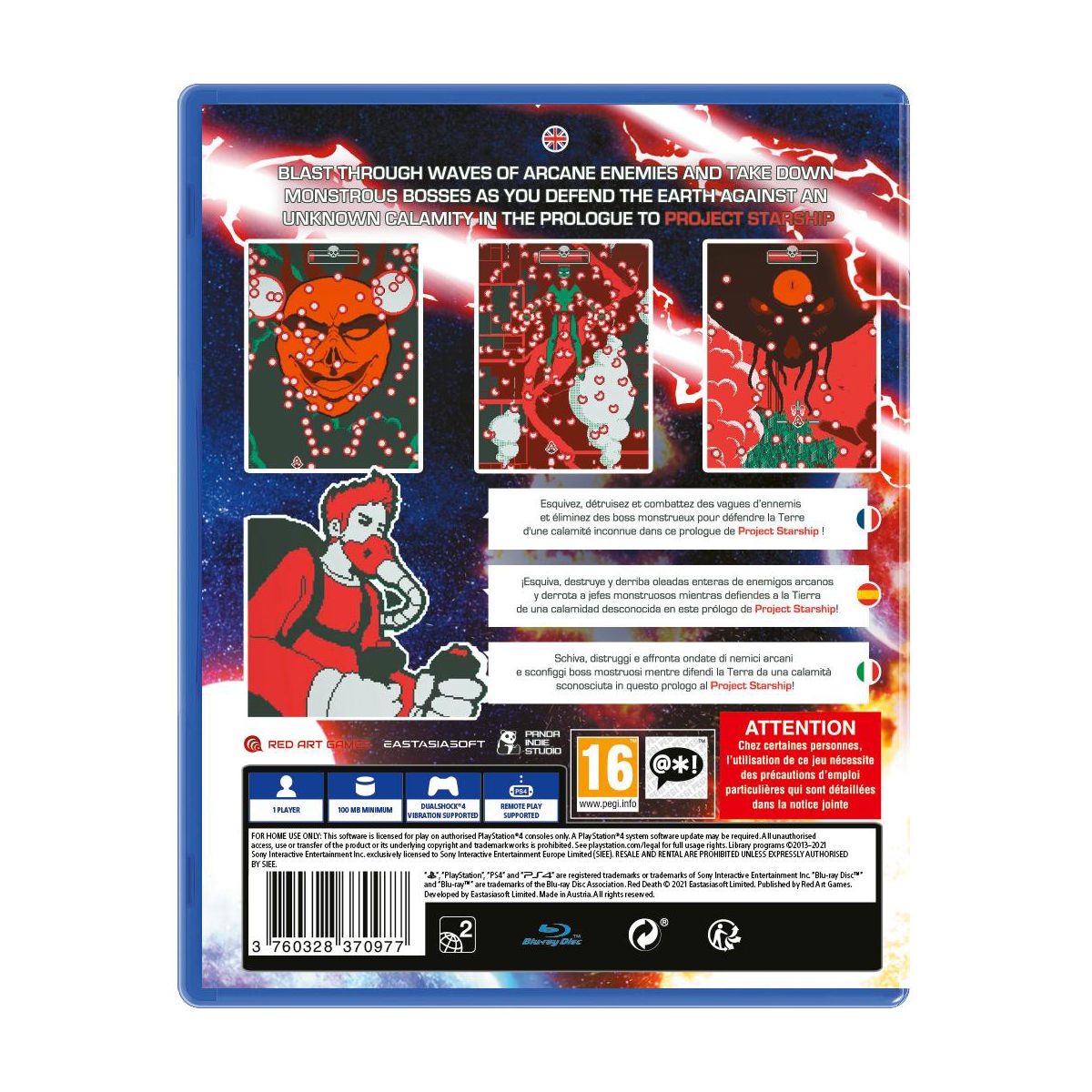 Red Death from eastasiasoft and Red Art Games for the Sony PS4 is a vertical shooter and a Prologue to the series Project Starship!Blast through waves of arcane enemies and take down monstrous bosses as you defend the earth against an unknown calamity.As a prologue to Project Starship, vertical bullet hell shoot’em up Red Death sets a collision course against a full-scale invasion bent on eradicating humanity, presented in nostalgic 4-tone style!Something weird is going on! Will you save humanity from extinction?Features:Survive waves of intense bullet hell action!Upgrade weapons with numerous power pickups.Compete for the highest score in old-school arcade style.Enjoy an intriguing Story Mode across a number of scripted levels.Test your limits with endless randomized challenges in Arcade Mode.Charge and unleash vicious Overload attacks to turn the tide of battle!