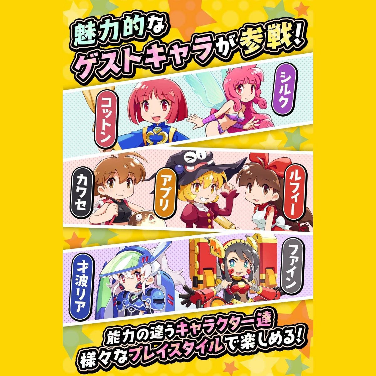 Cotton Rock n Roll (also known as Cotton Fantasy) from Success for the Sony PS4 is a brand-new entry in the Cotton series that sees Cotton and Silk embark on another adventure, this time in HD graphics and with modernised gameplay, but true to its roots!This Region Free Japanese import plays in full English - or whatever language your system is currently set to!Accompany Cotton and Silk On A New AdventureSomething sinister is in the making – the willows are vanishing from Fairyland and the Fairy Queen entrusts Silk with solving the case. Who could be behind this devious ploy? For a promised lifetime all-you-can-eat supply of tasty willows, the little witch Nata de Cotton is willing to help her old friend out and embark on yet another adventure together, to save the Fairyland.Experience the most precise gameplay in the Cotton series, mixing up the iconic Cotton playstyle with a few new shoot ‘em up mechanics, 6 iconic playable characters and 16 colourful and varied stages to unlock, with vertical, horizontal and 3D movement. Each character has their own mechanics and attacks, creating a lot of variation and replayability on your hunt for the high score.Packaged with a light-hearted story full of charming, fun cutscenes, fully-voiced in Japanese, and an exhilarating soundtrack with iconic remastered tracks from the past, this is a great and accessible new shoot ’em up game for fans of the Cotton series and newcomers alike!Features:Unlockable content and different characters offer high replayability.An exhilarating soundtrack featuring iconic remastered tracks from past games.Aim for the high score in your nation and globally with the featured ranking boards.16 colourful and varied scrolling stages to unlock, with vertical, horizontal, and 3D movement.Easily accessible Shoot ‘em up gameplay, perfect for newcomers, but with enough depth for veterans.Modern, HD graphics and new shoot ’em up game mechanics, including Psyvariar‘s “Buzz” system and Sanvien‘s “Time Attack” mechanic.Light-hearted story with fun and charming cutscenes voiced entirely in Japanese (English, French, Italian, German, Spanish subtitles included).6 iconic, playable characters to choose from, each with different mechanics and attacks, even including guests like Umihara Kawase and Luffee from Doki Doki Poyacchio.