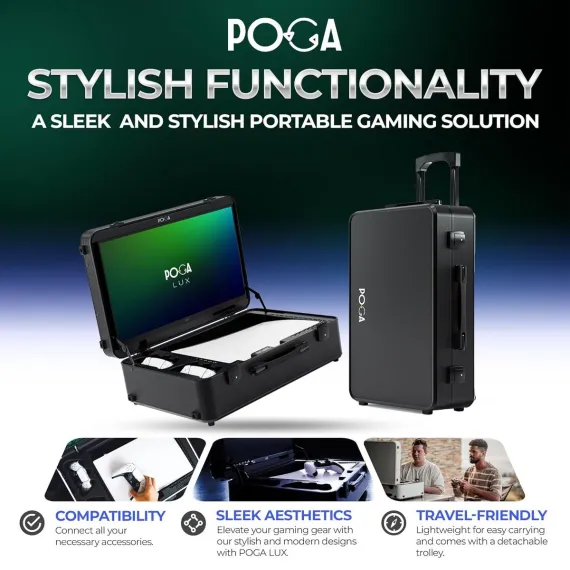Game on the go with the award-winning INDIGAMING POGA Lux V3 case for the PS5. Whether you are at home, the office, or anywhere else for that matter, you can enjoy your favourite console games in full HD glory, thanks to the incredibly responsive 24" gaming monitor. Simply install your PS5 Console in the case, connect the cables, and you are ready to experience the pinnacle of portable gaming! (console not included). Detachable Trolley for more Gaming comfort & Comfortable Plug & Play Design.