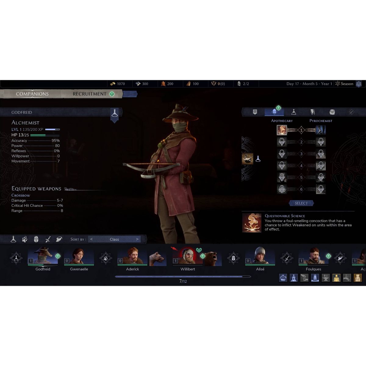 - 6 playable classes: Crusader, Alchemist, Beastmaster, Flayer, Duelist and Gunner, each with unique skills and preferred weapons. Heavy armor, combat-trained bears, explosive flasks… discover your Companions' synergies to fight battles as effectively as possible.