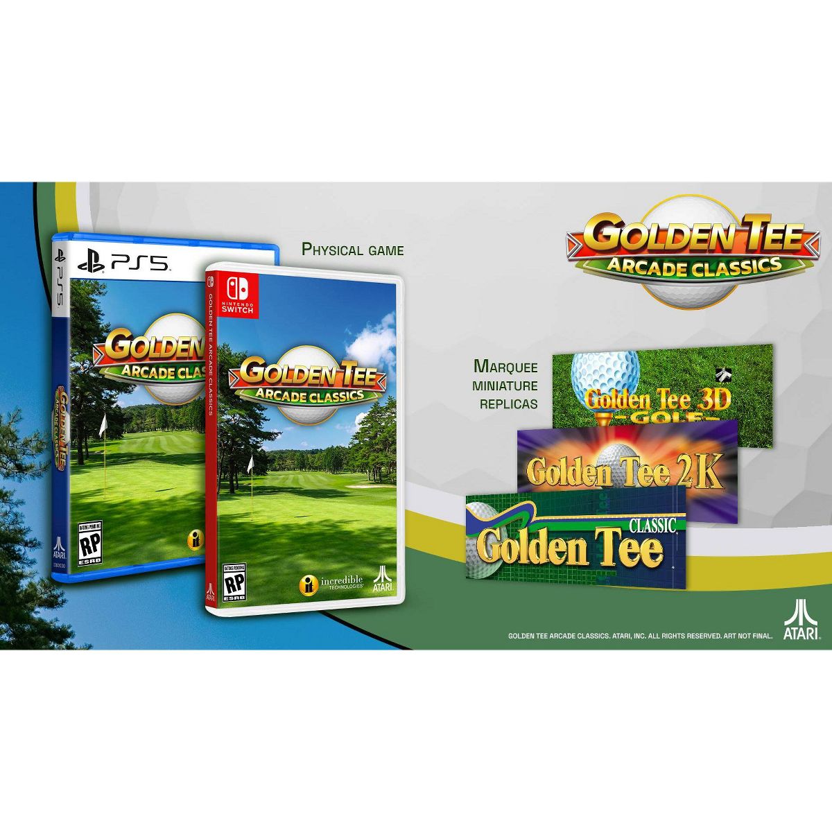 • Miniature Marquee Replicas: Golden Tee 3D Golf, Golden Tee Classic, and Golden Tee 2K!