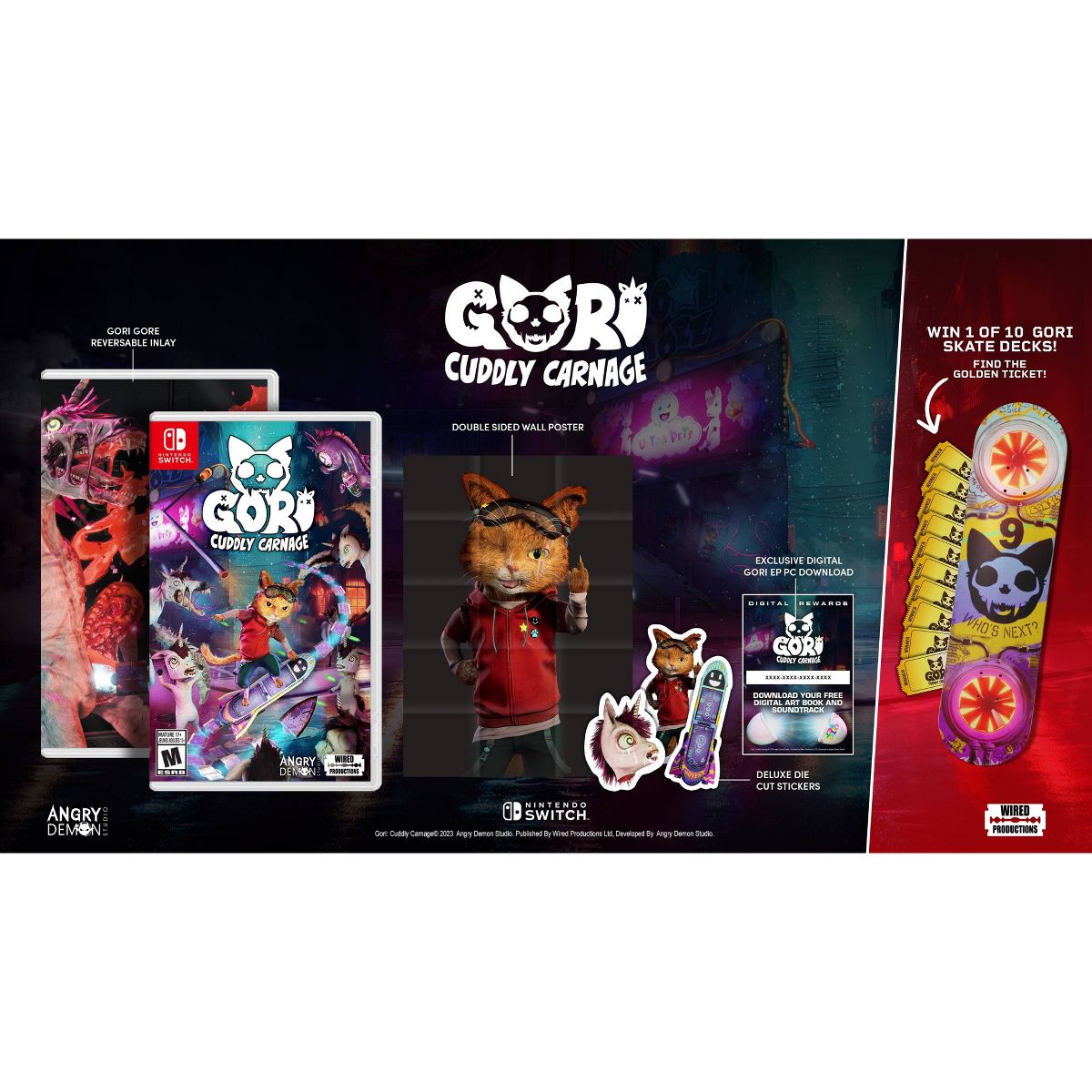 Master explosive weaponry and devastating combos in an epic battle to prevent the Adorable Army from conquering the galaxy, and rescue Professor Y, their missing creator and only human who showed Gori and his friends love. Push your combat and platforming skills to the limits as you fight your way through twisted landscapes filled with environmental hazards, razor-sharp adult humour and a bone-crunching, pulse-pounding soundtrack.