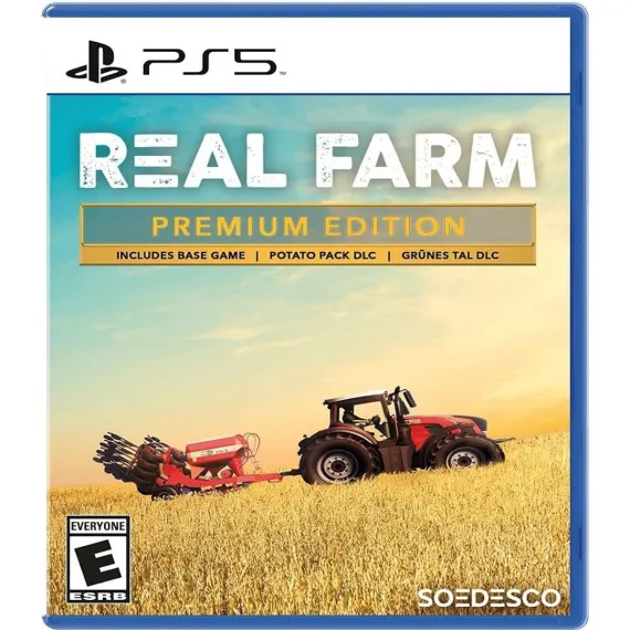 Cultivate Your Farming Dreams with Real Farm - Premium Edition on PlayStation 5!Experience the ultimate farming adventure with Real Farm - Premium Edition, featuring both the Potato Pack and Grünes Tal map DLCs. Optimized for the next generation of consoles, enjoy improved graphics and frame rates for a truly immersive experience. With various quality of life improvements, including a completely new AI and a UI/UX overhaul, Real Farm offers polished game mechanics for a smooth farming experience.Pull on your boots, fire up your tractor, and start your ‘real farm.’ Go from farmhand to agricultural A-list in Career mode, or cultivate the role of an established farmer in Free mode. With two maps, explore the American and West European countryside. Acquire land, manage staff, crops, and animals, and drive powerful farm vehicles as you grow your reputation.Build the ultimate support crew with drivers from the show to improve your access to better parts, chances of winning, and ultimately your total rake from race wagers!Features:Includes Potato Pack & Grünes Tal map DLCs.Optimized for next-gen consoles with improved graphics and frame rates.Various quality of life improvements, including new AI and UI/UX overhaul.Re-polished game mechanics for a smooth farming experience.Career mode: Go from farmhand to agricultural A-list.Free mode: Play as an established farmer.Explore American and West European countryside maps.