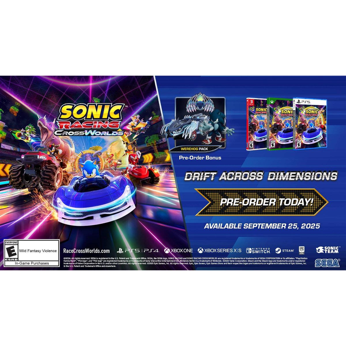Race across land, sea, air, space and time in Sonic Racing: CrossWorlds! Wrap through travel rings into new dimensions where something new awaits around every twist and turn.