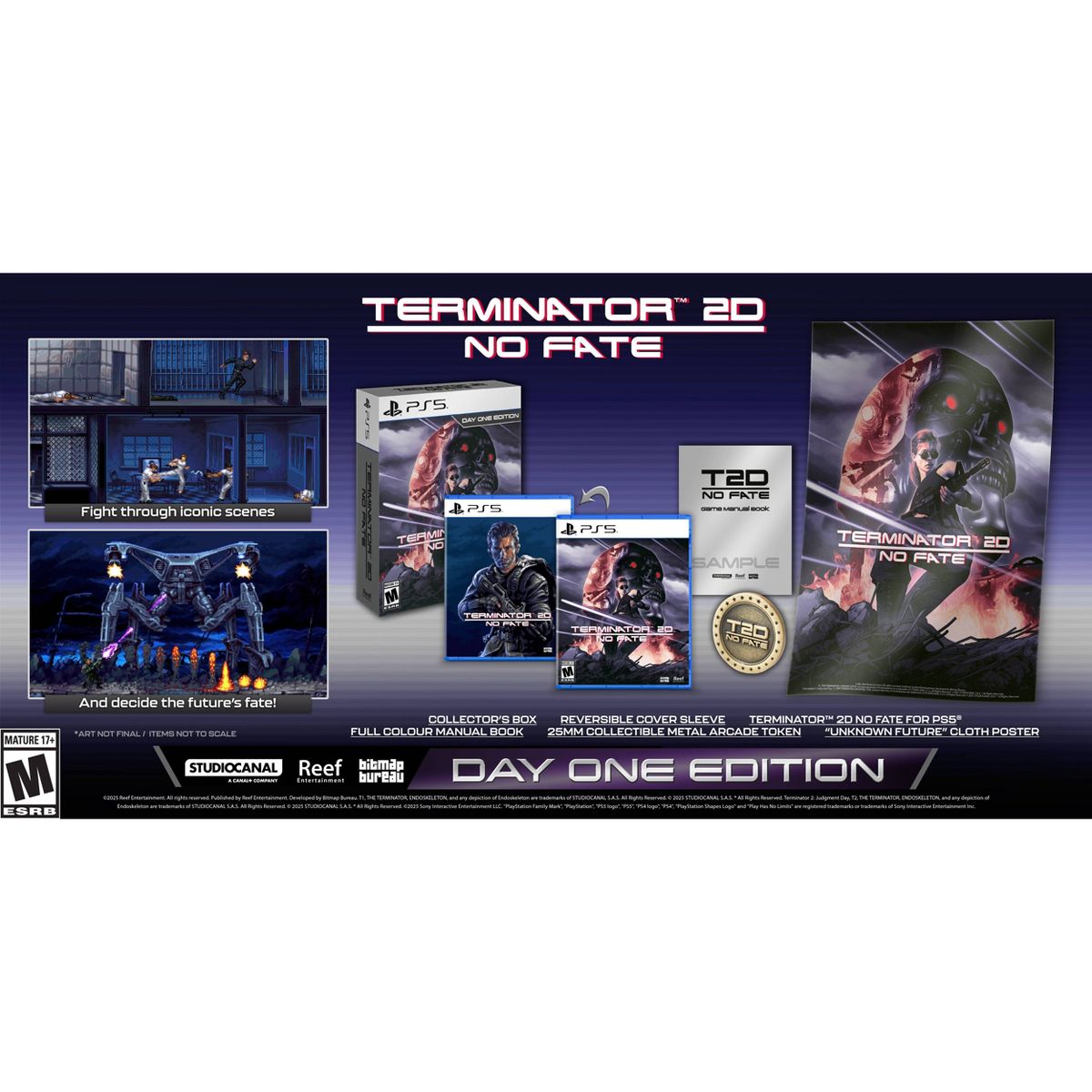• The Day One Edition comes with a Reversible Cover Sleeve, “Unknown Future” Cloth Poster, 25mm Collectible Metal Arcade Token, Full Color Manual Book, and Collector’s Box.