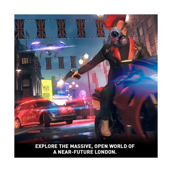 In Watch Dogs: Legion from Ubisoft for the Sony PS4, you get to build a resistance from virtually anyone you see as you hack, infiltrate, and fight to take back a near-future London that is facing its downfall.In the near future, London is facing its downfall. After devastating terror attacks rock the city, an all-seeing authoritarian state has oppressed the people, a corrupt private military corporation controls the streets, and a powerful crime syndicate is preying on the vulnerable. The fate of London lies with you, and your ability to recruit a resistance and fight back.Watch Dogs: Legion delivers a never-before-seen gameplay innovation that allows you to recruit and play as anyone you see in the iconic city of London. Every single character in the open world is playable, and everyone has a backstory, personality, and skill set that will help you personalize your own unique team.Recruit your friends and join the fight in online multiplayer to take back London in four-player co-op missions, end-game challenges, special game modes and events.Hack armed drones, deploy spider-bots, and take down enemies using an Augmented Reality Cloak. Welcome to the Resistance!Features:Freedom and Consequences - Play the game the way you want. A brand-new melee system and a wide range of weapons and abilities means that the way you approach combat has real consequences.Customize Your Recruits - Personalize each member of your resistance and level them up by building out different skill sets, from hacking to stealth moves to all-out assault training. Customize further with unique outfits and iconic masks.Play As Anyone - Recruit anyone from the entire population of London into your resistance: from an MI6 agent to a tough bareknuckle fighter, or an inconspicuous old lady… Anyone you see can join your team and has a unique backstory, personality, and skillset.Team Up with Friends - Bring your team online with up to three friends as you freely explore the world together or take on entirely new co-op missions and challenging end-game content. Enjoy free regular updates adding new online modes, rewards, and themed events.Open World London - Explore a massive urban open world and visit London’s many famous landmarks – including Trafalgar Square, Big Ben, or the London Eye – and engage in side activities like bareknuckle boxing, freestyle football, illegal courier contracts or street art.