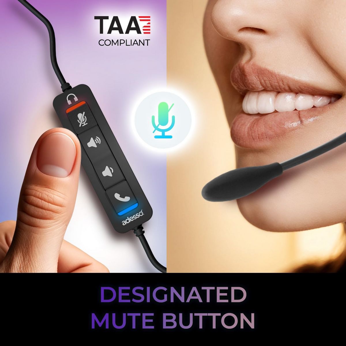 Adesso Xtream P4-TAA Headset with Mute Volume +/- Answer/End Call Controls