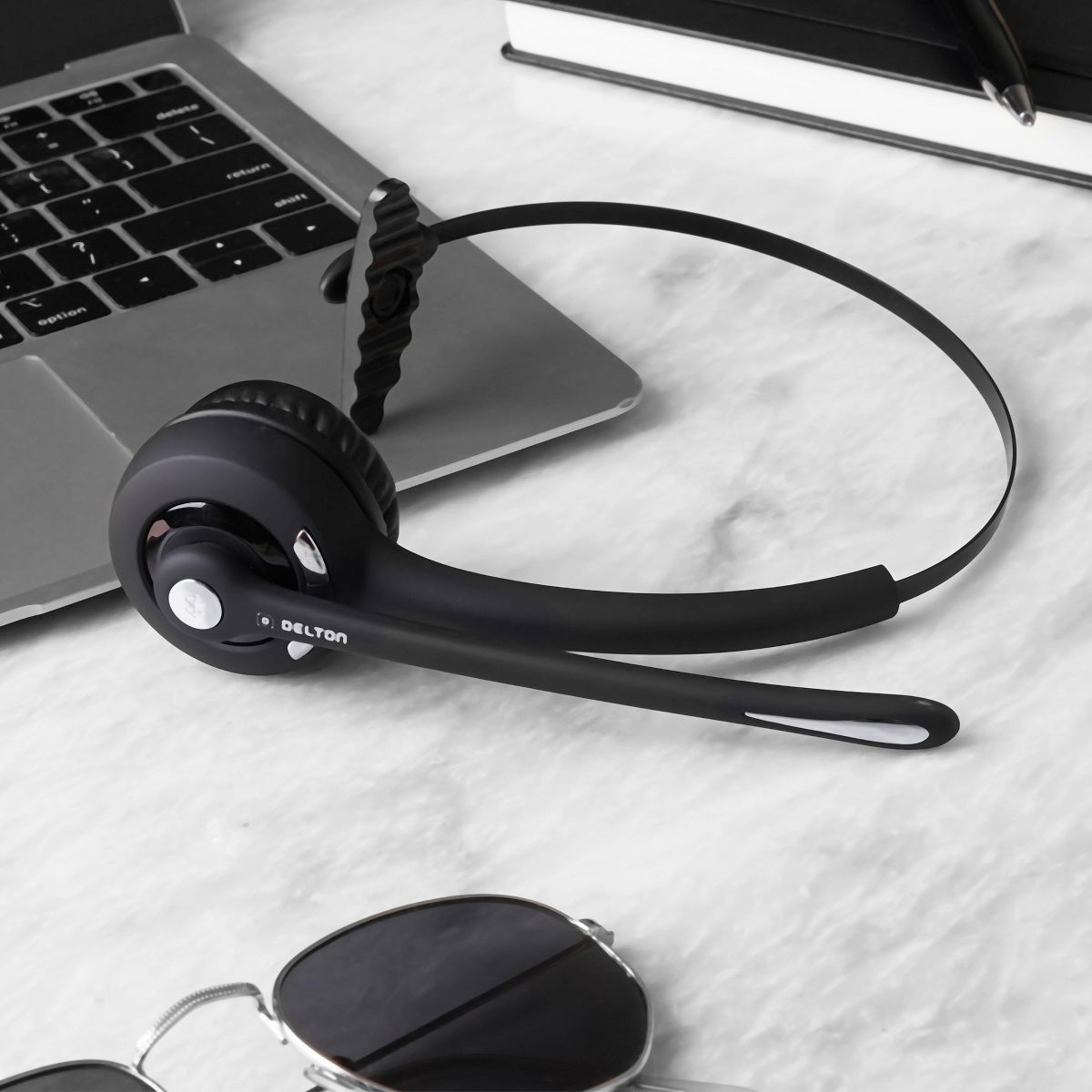 Delton 10X Wireless Noise-Cancelling Bluetooth Computer Headset with USB Dongle & Hook, Black