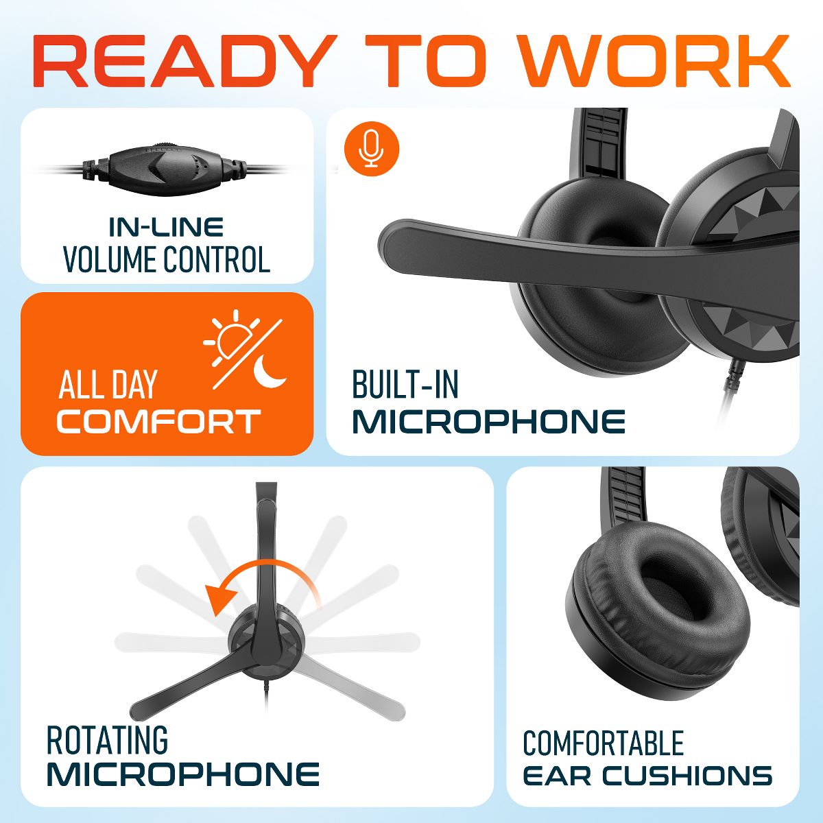 Elevate your workday with the Delton 12Y noise-canceling headset with microphone, crafted for seamless integration with PCs, laptops, and USB desk phones across all major operating systems. Setup is effortless with the 12Y's plug-and-use design, requiring no additional software, drivers, or installs. This microphone can be adjusted for comfortable use on either your left or right side, ensuring your personal comfort, while the soft padded ear cushions and adjustable headband promise a snug fit for hours of immersive sound. The 4.9' cable offers ample movement freedom, and the universal USB connection guarantees a stable link. With in-line control for sound adjustment, built-in microphone for crystal clear calls, and 40mm drivers for a full audio spectrum, this noise-canceling headset combines high fidelity and deep bass for an unmatched audio experience, making it an essential for any professional workspace.