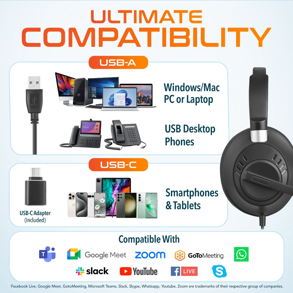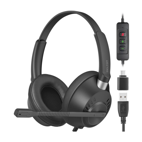 Delton 42Y Noise-Canceling Stereo USB-A Headset + USB-C Adapter
