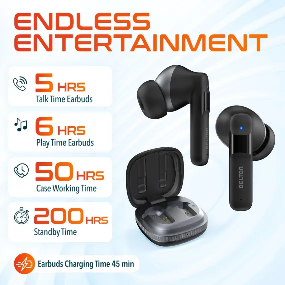Delton T50 Wireless Earbuds with 4 ENC Microphone, Connectivity with USB Dongle Type-A & Type-C, Black