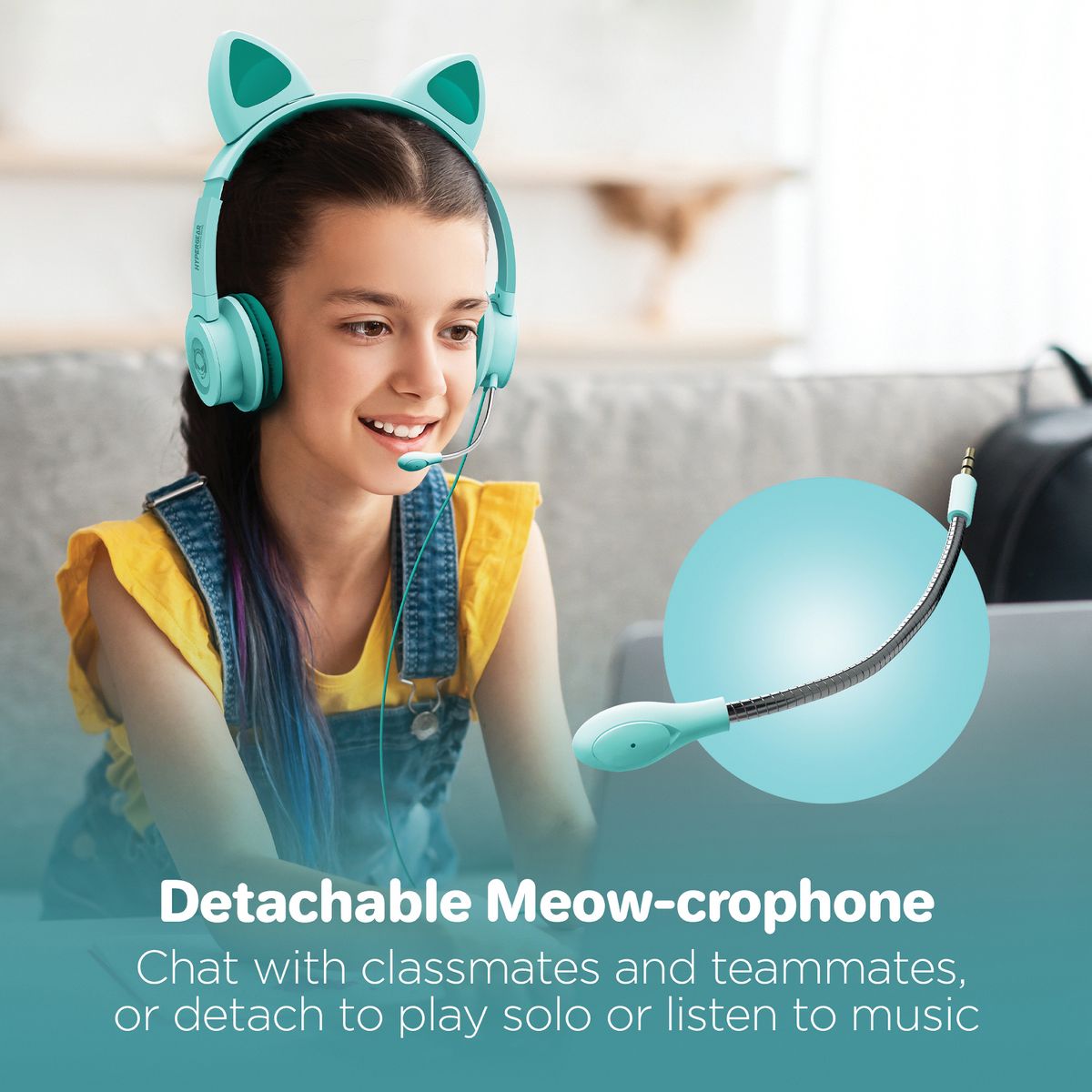 Get your game on with cat-chy style! Meet the Teal Kombat Kitty from HyperGear, the purr-fect kids gaming headset, compatible with all devices featuring a 3.5 mm connector such as PC, Mac, Playstation, Xbox, Switch, and smartphones. This headset offers incredibly cozy, cloud-like comfort during long play sessions with ultra-soft plush ear cushions and an adjustable padded headband. The detachable microphone is ideal for talking to your teammates, and it can be tucked away once done playing, letting Kombat Kitty double as your favorite pair of headphones for an added flair to any listening experience. Play to win!_