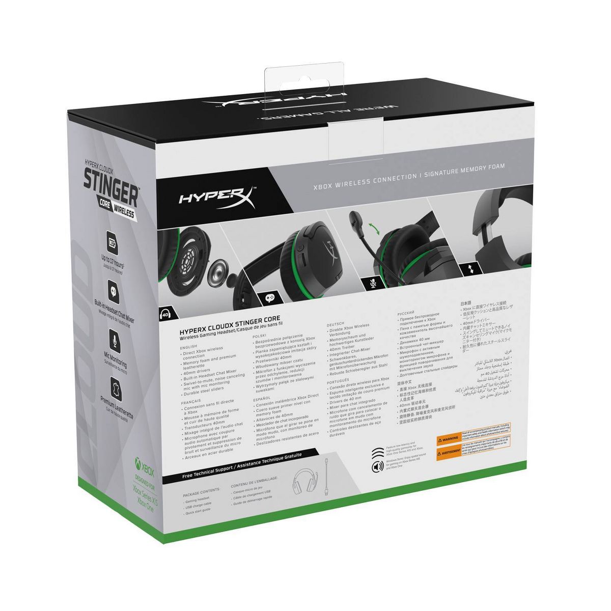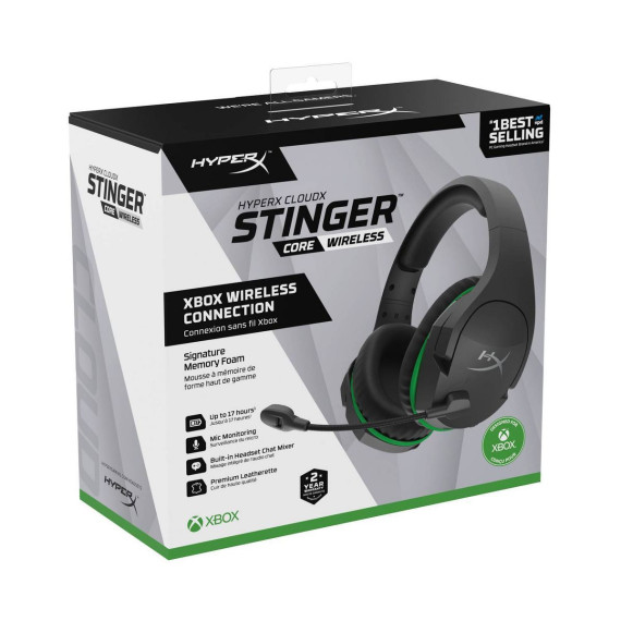 HyperX CloudX Stinger Core™ is an Official Xbox Licensed wireless headset designed for Xbox Series X|S and Xbox One. It features a direct Xbox Wireless connection for high-quality wireless audio with just one button press. Expand your in-game audio with 40mm drivers and Windows Sonic spatial sound, optimized for Xbox Series X|S and Xbox One. Game comfortably during longer gaming sessions with plush memory foam, smooth leatherette ear cushions and a lightweight design.