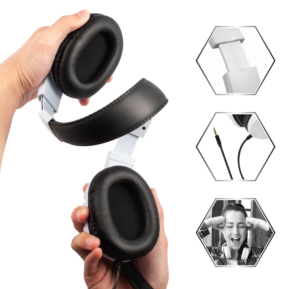 Immerse yourself in the ultimate gaming experience with this multi-platform gaming headset. Compatible with PS5, PS4, Nintendo Switch, Xbox Series X/S, Xbox One, PC, laptop, tablet, cell phone, TV, and other devices with a 3.5mm audio jack. Please note, an additional adapter (Not Included) is required for older Xbox controllers. Enjoy superior sound quality with over-ear headphones featuring a magnetic driver for capturing every detail, from atmospheric sounds to stealthy footsteps. Gain a competitive edge with accurate sound positioning and 3D stereo sound, delivering crisp highs and deep bass for an immersive gaming experience. Communicate clearly with the built-in high-sensitivity microphone that cancels out background noise, allowing for strategic discussions. The flexible mic adjusts easily for in-game and online chats. Designed for comfort, the lightweight headset features soft memory protein earmuffs and a stretchable metal headband for extended wear. The 5.8 feet cable offers flexibility and durability. The package includes a light blue 3.5mm wired gaming headset with a microphone. Connect effortlessly to multiple devices for an immersive gaming experience across platforms. Use this universal headphones for gaming, music, movies, and more. Elevate your gaming with this versatile headset, providing superior sound, clear communication, and comfort. Get ready for epic adventures with this 3.5mm wired gaming headset. Additionally, PCs with sound cards that have separate microphone and speaker connections, identified by pink and green plastic around the jack, require a 3.5mm TRRS splitter adapter (not included).