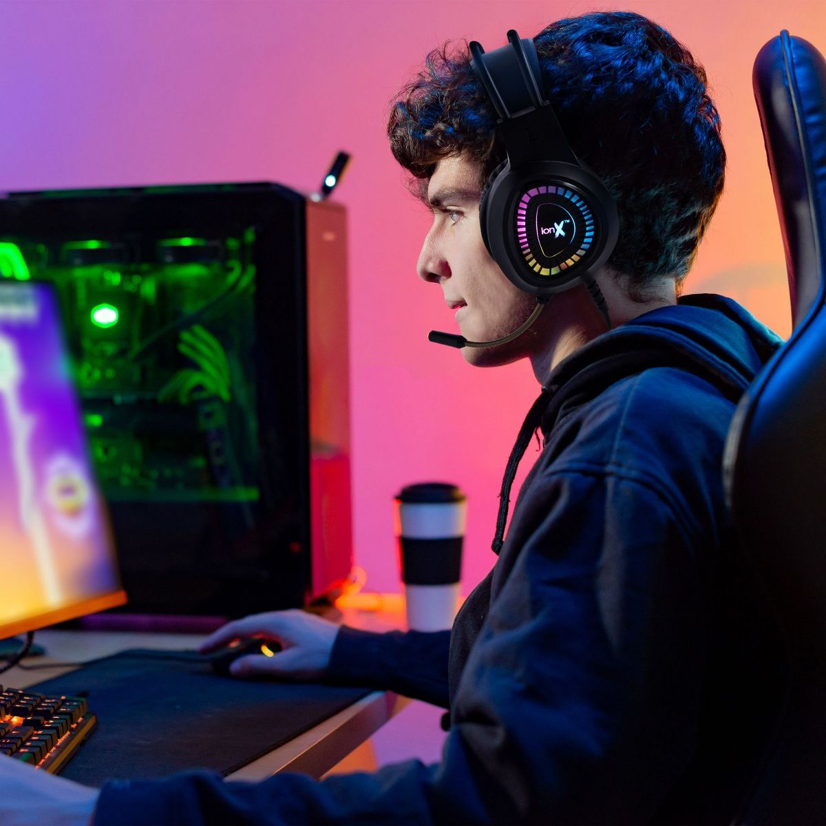 ionX Wired Gaming Headphones with Microphone, Over the Ear 3.5mm, RGB Lighting, Black - 40mm Audio Driver