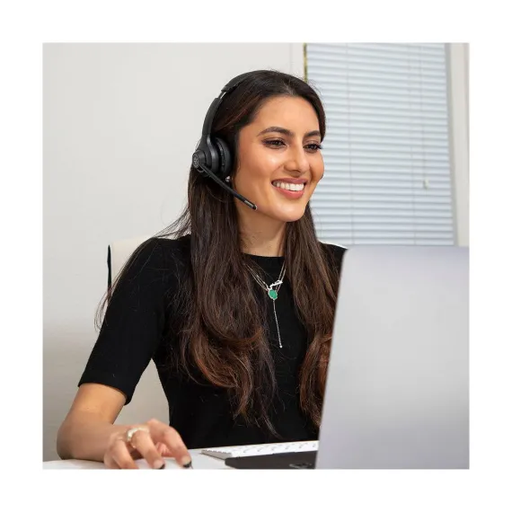 Meet the GO Work wireless on-ear headset, perfect for everyday office life. Enjoy clear calls and video calls – and never forget to un-mute with the mute-indicator-light at the end of the boom mic. The powerful boom mic can be rotated up, when you’re focused independently or down to allow colleagues to hear just you (not the dog barking or the doorbell). Transition from mobile to laptop without touching any settings and enjoy GO Work wired while stationary at your computer or wireless for more mobility to multitask.