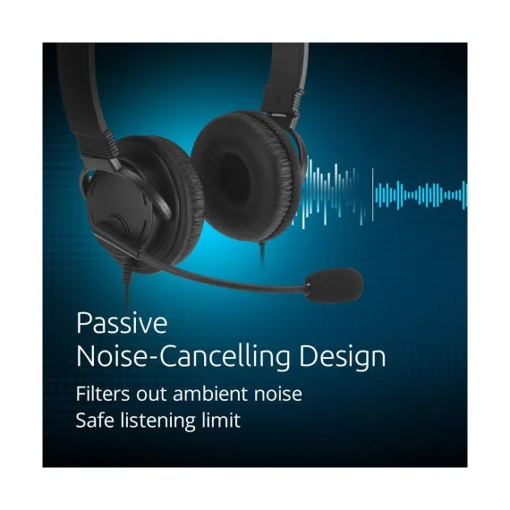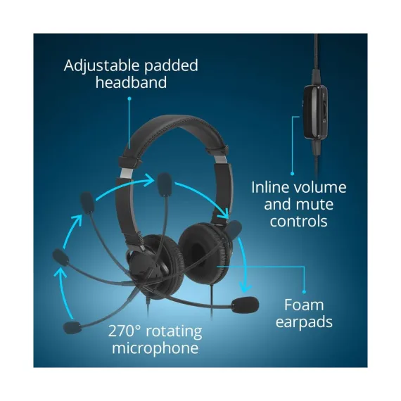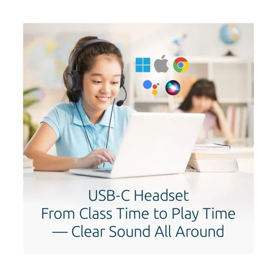 Kensington Classic EQ USB-C Headset with Mic and Volume Control, 6 ft (1.8m) Nylon Braided Cord, for School, Kids, Adults, Padded Adjustable Headband,