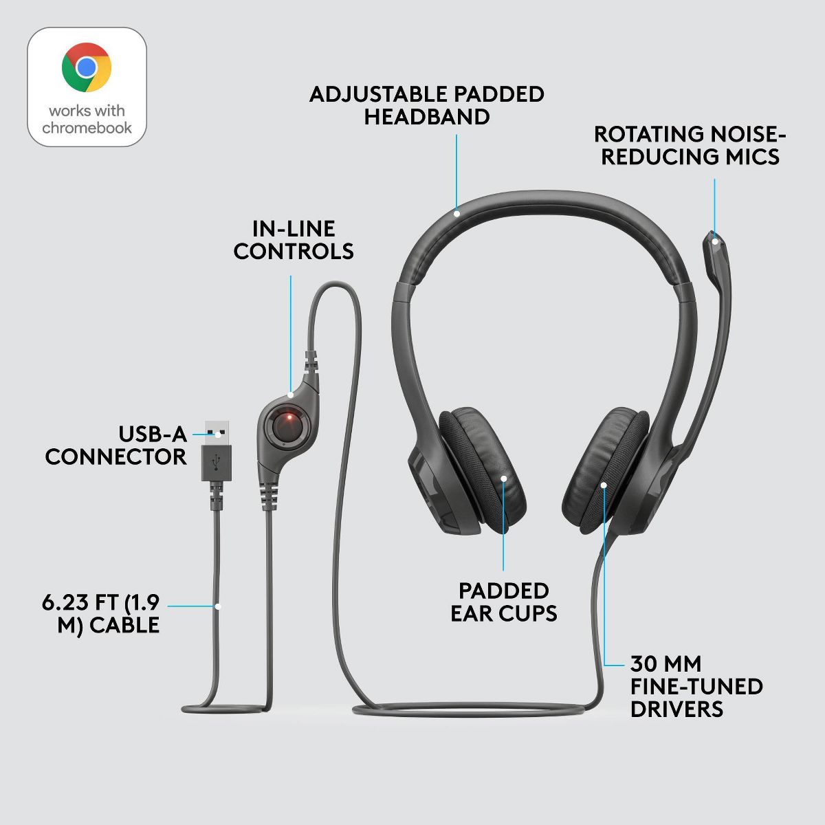 Immerse yourself in comfort. The Logitech® USB Headset H390 features
