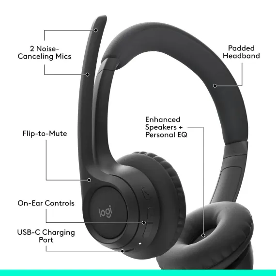 Logitech Zone 300 Bluetooth Wireless Headset - Black: Hands-Free, Multi-Pairing, USB-C