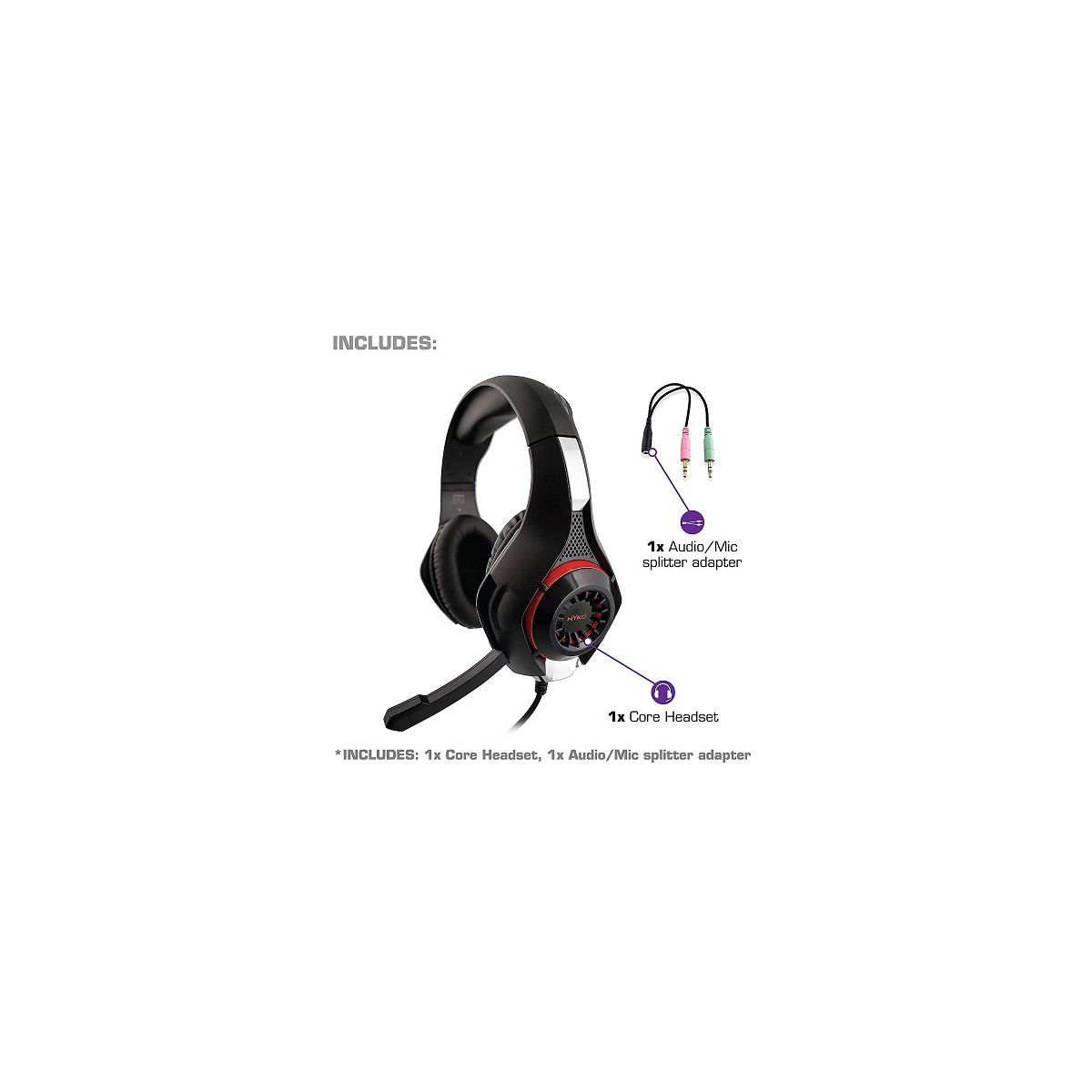 Dominate your game with the premium audio quality while using Nykos Core Headset. Core Headset is an over-ear stereo headset featuring 40mm driver speakers and an omni-directional microphone that is retractable when not in use. The headband can be adjusted and the cushioned earcups allow for a more comfortable audio experience during extended gaming sessions. Volume for the headset speakers is easily adjustable and the microphone can be muted via inline controls. Features: - Hear game and chat audio through 40mm driver stereo speakers - Omni-directional retractable microphone - Adjustable headband and cushioned earcups - Inline controls for volume and mute - Core Headset is compatible with PlayStation5, PlayStation4, Xbox Series X|S, Xbox One, Nintendo Switch, Nintendo Switch Lite, PC as well as other 3.5mm audio devices.* *Not compatible with Xbox One controllers without a 3.5mm audio port. May not be compatible with all 3.5mm audio devices. **For LED function, plug in USB cable.