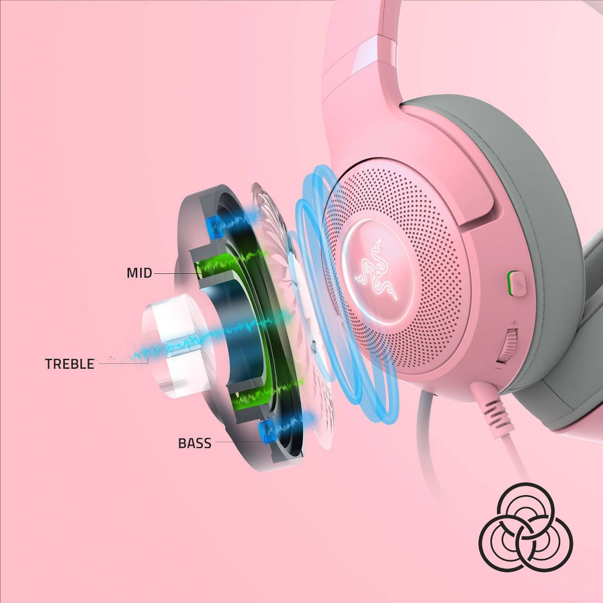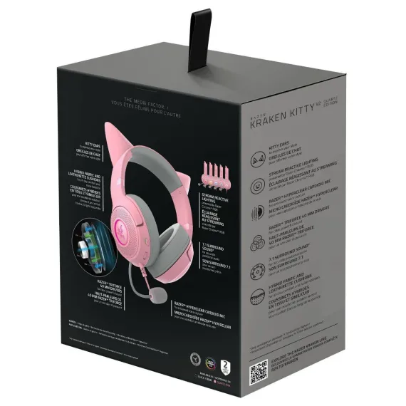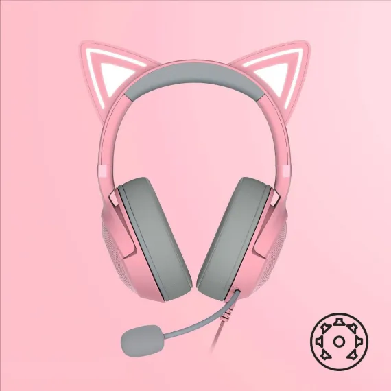 Create your cutest stream persona in killer kitty style with the new Razer Kraken Kitty Edition V2. Stand out and turn heads with unique kitty ears powered by Razer Chroma RGB, as you put on a show with stream reactive lighting and a crystal-clear mic.