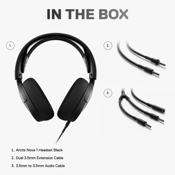 SteelSeries Arctis Nova 1 Wired Gaming Headset for PC: Adjustable Headband, Noise Canceling