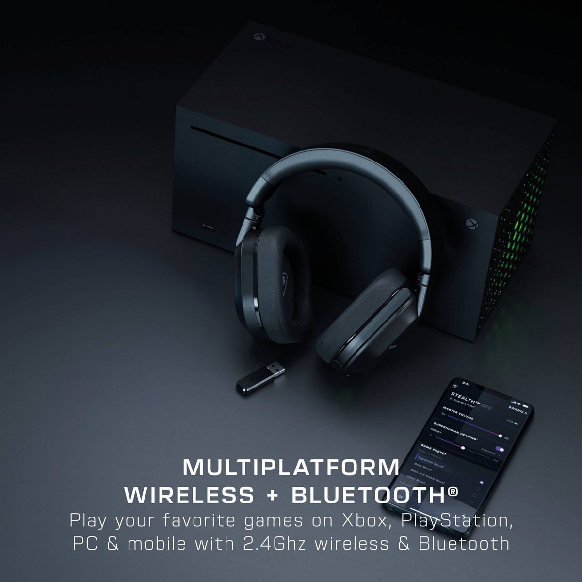 The Turtle Beach® Stealth™ 600 wireless multiplatform gaming headset for Xbox Series X|S & Xbox One, PS5™ & PS4™, Windows PCs, Steam Deck™, and mobile is refreshed and powered up for a third generation of gaming domination. With a history atop the wireless console headset charts, the Stealth™ 600 enters its 3rd generation, but is just getting started. Experience low-latency wireless connectivity on any console & PC, plus built-in Bluetooth® lets you connect directly to mobile devices. Plus, switching between 2.4GHz wireless and Bluetooth® connections is made easy using the QuickSwitch button located conveniently on the headset. Be unstoppable with a best-in-class, 80-hour battery life featuring quick charge so you can get back in the game right away.