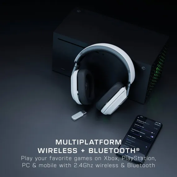 The Turtle Beach® Stealth™ 600 wireless multiplatform gaming headset for Xbox Series X|S & Xbox One, PS5™ & PS4™, Windows PCs, Steam Deck™, and mobile is refreshed and powered up for a third generation of gaming domination. With a history atop the wireless console headset charts, the Stealth™ 600 enters its 3rd generation, but is just getting started. Experience low-latency wireless connectivity on any console & PC, plus built-in Bluetooth® lets you connect directly to mobile devices. Plus, switching between 2.4GHz wireless and Bluetooth® connections is made easy using the QuickSwitch button located conveniently on the headset. Be unstoppable with a best-in-class, 80-hour battery life featuring quick charge so you can get back in the game right away.