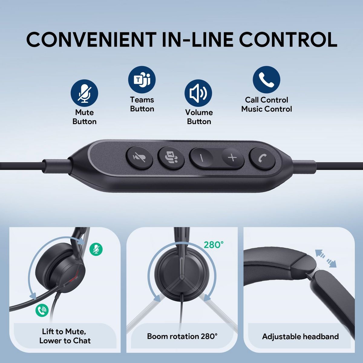 Yealink UH44 Teams Certified USB Headset, Noise Cancelling Mic, Single-Ear