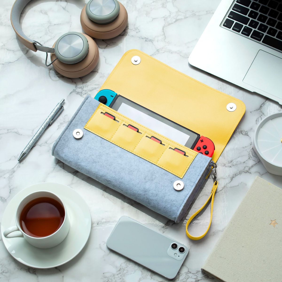 Easily carry your console anywhere you go! With our felt carrying case bag, you can strap it on your wrist or wear it like a shoulder bag. Perfect game storage solution which can hold not only your console but also accommodates 4 game cartridges.
