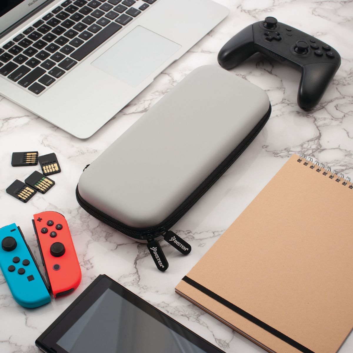 Insten Carrying Case with 10 Game Card Holder Slots for Nintendo Switch & OLED Model, Controllers and Accessories, Portable Travel Cover, Gray
