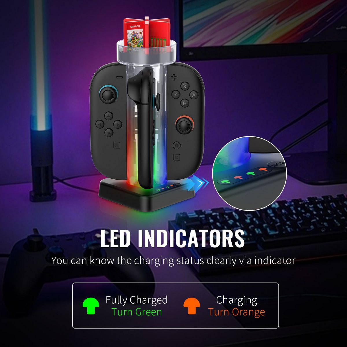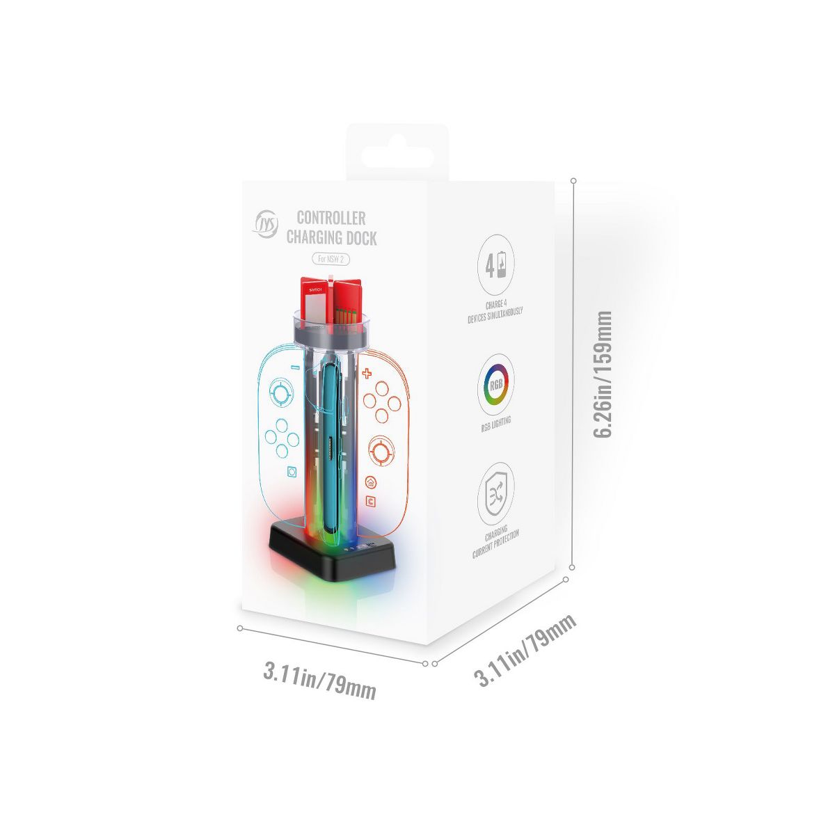 Power up your gaming experience with the Link 4-in-1 Fast Charging Dock – an all-in-one solution built exclusively for the Nintendo Switch 2. Designed with efficiency, style, and convenience in mind, this compact dock not only charges your console and accessories quickly, but also adds a futuristic touch to your setup with intuitive touch controls and dynamic LED lighting. All-in-One Charging & Display StationCharge up to four devices simultaneously — including your Nintendo Switch 2 console and up to three accessories (Joy-Cons, Pro Controllers, or other USB-C gear). Whether you're preparing for a long gaming session or just keeping your gear topped up, this dock delivers fast, stable charging every time. Touch Control & LED Light EffectsEasily toggle LED lighting modes with a simple touch — perfect for customizing your gaming space with ambient light. The soft-glow LED ring indicates charging status and adds a modern, high-tech look to your setup, even in low-light environments. Compact, Sleek & Travel-FriendlyCrafted with a matte black finish and minimal footprint, the Link 4-in-1 Dock fits seamlessly into any gaming environment. It’s lightweight, durable, and easy to pack — ideal for travel, tournaments, or compact gaming desks.