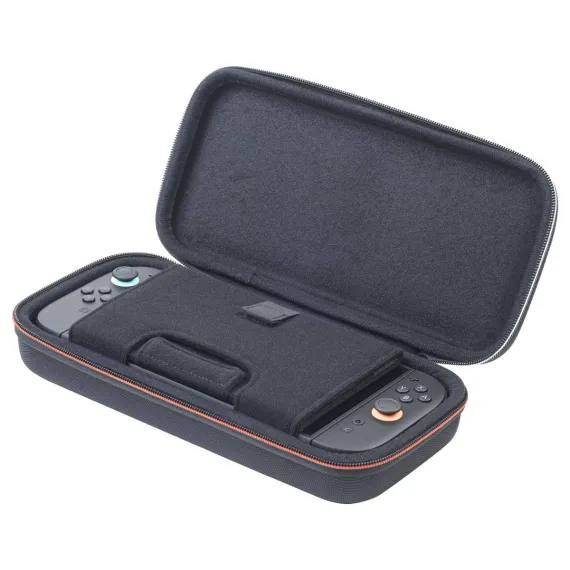 I originally pre-ordered the official Nintendo Switch 2 case but it was a softshell slim case and I travel alot with my console in my purse so it gets knocked aound quite a bit. Softshell is not gonna cut it! So, I returned it and ordered this instead. It is a hardshell case, very sturdy. Room for the switch 2 and possible grips added to the joycons. Has room under the console for a game card case and a flap with additional pockets for game cards. The flap can act as an easel stand for the console but, to me, with the kickstand on the console this is an unnecessary feature. The game card flap folds over the switch and velcros down the flap and console. Very secure. It includes a cleaning cloth, 2 SD card cases and there are a couple of foam inserts with adhesive for using the case for the original Switch. A small downside is there is no inside mesh pocket for additional accessories. All and all though this is a great case and it still fits in my purse!