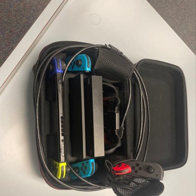 Take your favorite games and your Nintendo console everywhere you with this Switch Game Traveler Deluxe System Case. This travel case features mesh pockets, two game card cases, and two micro sd card case. The sectioned compartment of this travel case comes with sectioned compartments to secure screens with the Joy-Con attached, charging cradle, AC adapter with power cord, Joy-Con grip or Switch Pro Controller. Perfect to hold your chargers and cables as well, this gaming system accessory protects your console, adapter and other accessories from dust and has a sleek and light weight design.