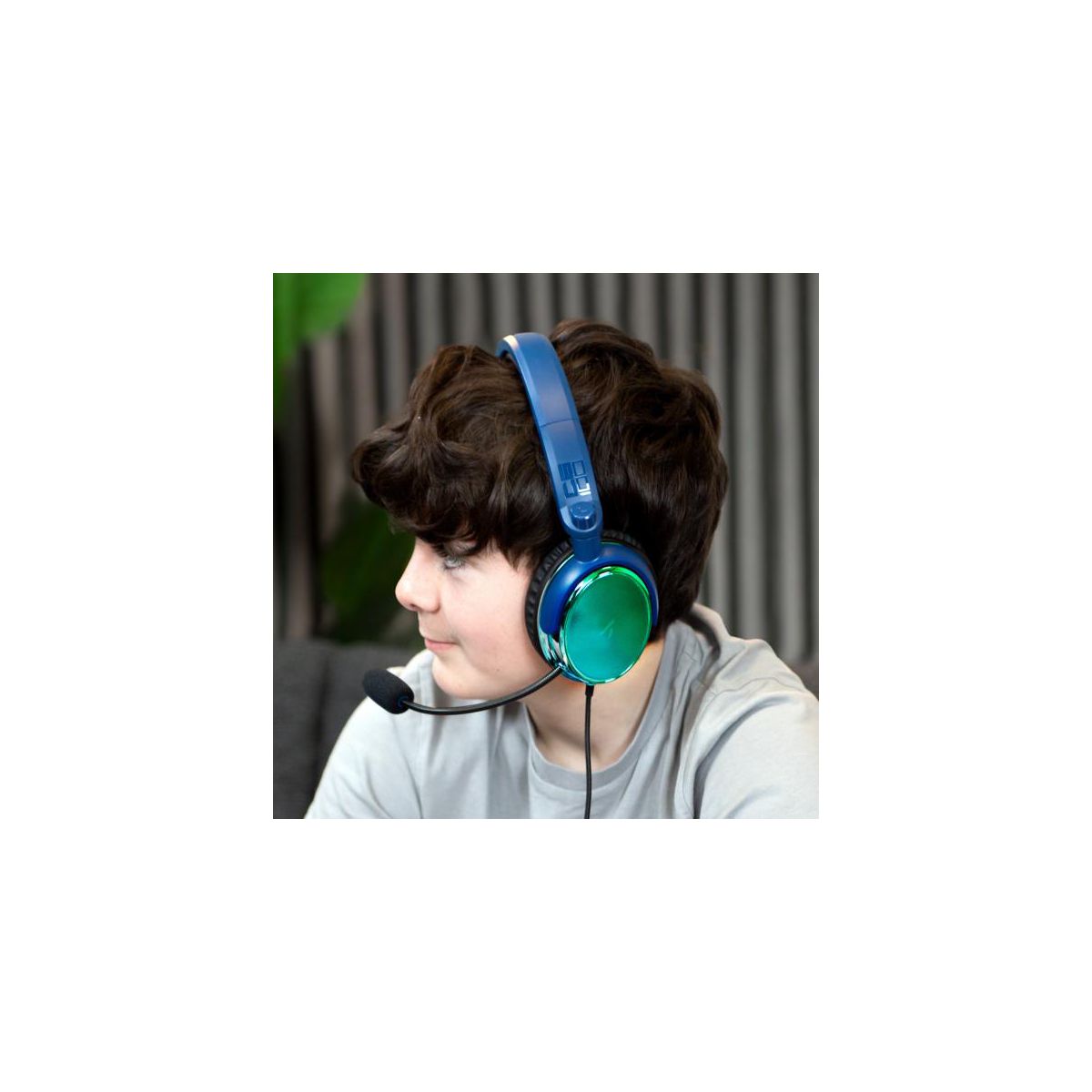 A multi-platform Gaming Headset, compatible with PS4, PS5, Xbox One, Series S, Series X, Nintendo Switch, Switch 2, PC and mobile devices.Designed for comfort and portability, it features soft-foam leatherette ear cushions for extended gameplay and fold-flat earcups for easy storage or travel. The adjustable headband ensures a secure and comfortable fit for players of all ages. Enjoy quality audio with 40mm speakers that bring your games to life, while the flexible mic captures your voice clearly for smooth team chat. Also features in-line controls that make it easy to adjust game and chat volume without interrupting gameplay.The durable braided cable resists tangling and daily wear, while the plug-and-play setup makes getting started quick and effortless.Green and blue finish with matte and gloss accents and two-tone mirrored earcups.