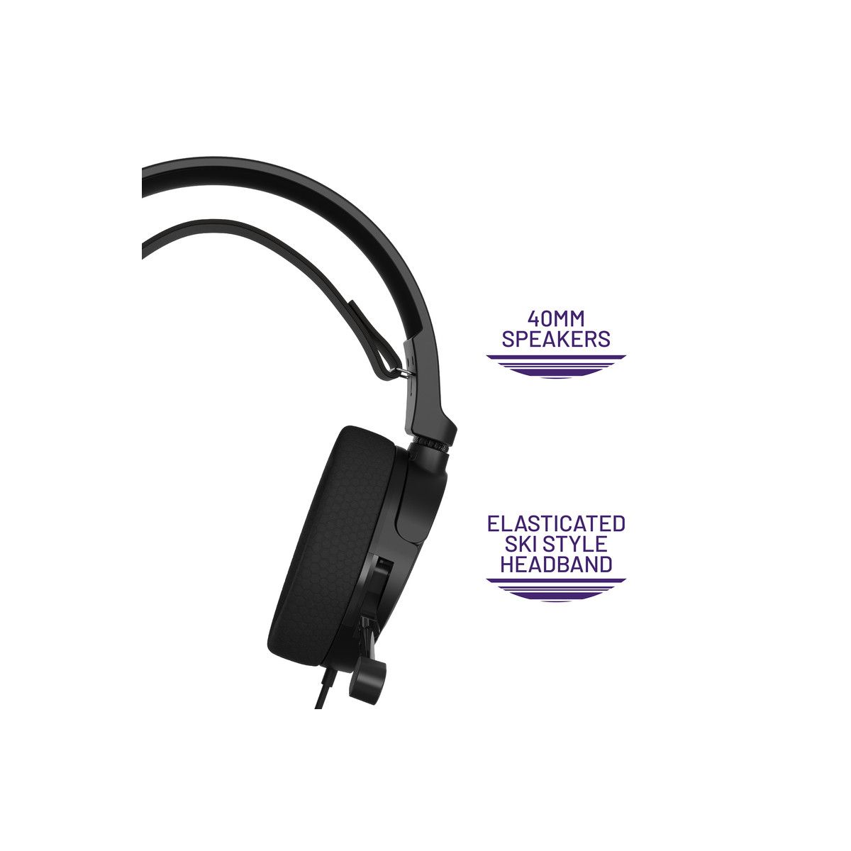 A multi-platform Gaming Headset, compatible with PS4, PS5, Xbox One, Series S, Series X, Nintendo Switch, Switch 2, PC and mobile devices. Featuring an ultra-lightweight, comfortable design with noise-cancelling, breathable ear cushions and a ski-style headband.Enjoy stellar audio and clear chat during gaming sessions with the premium speakers' air-flow chambers and flexible, pin-point mic. Adjusting audio and chat volume is simple with the headset's integrated controls, along with a mute function. Effortless setup with 3.5mm jack connection.Matte black finish with gloss accents.