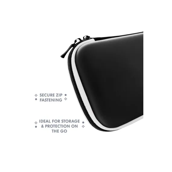 "Game on the go with the Hard-Shell Premium Travel Case, compatible with Nintendo Switch, Switch Lite & Switch OLED. Protect your console whilst you embark on epic adventures with the case's durable, hardshell exterior.The case's soft cotton lining keeps your Switch scratch-free and snug, whilst the storage feature holds up to 5 of your favourite games.Finished in black and white."