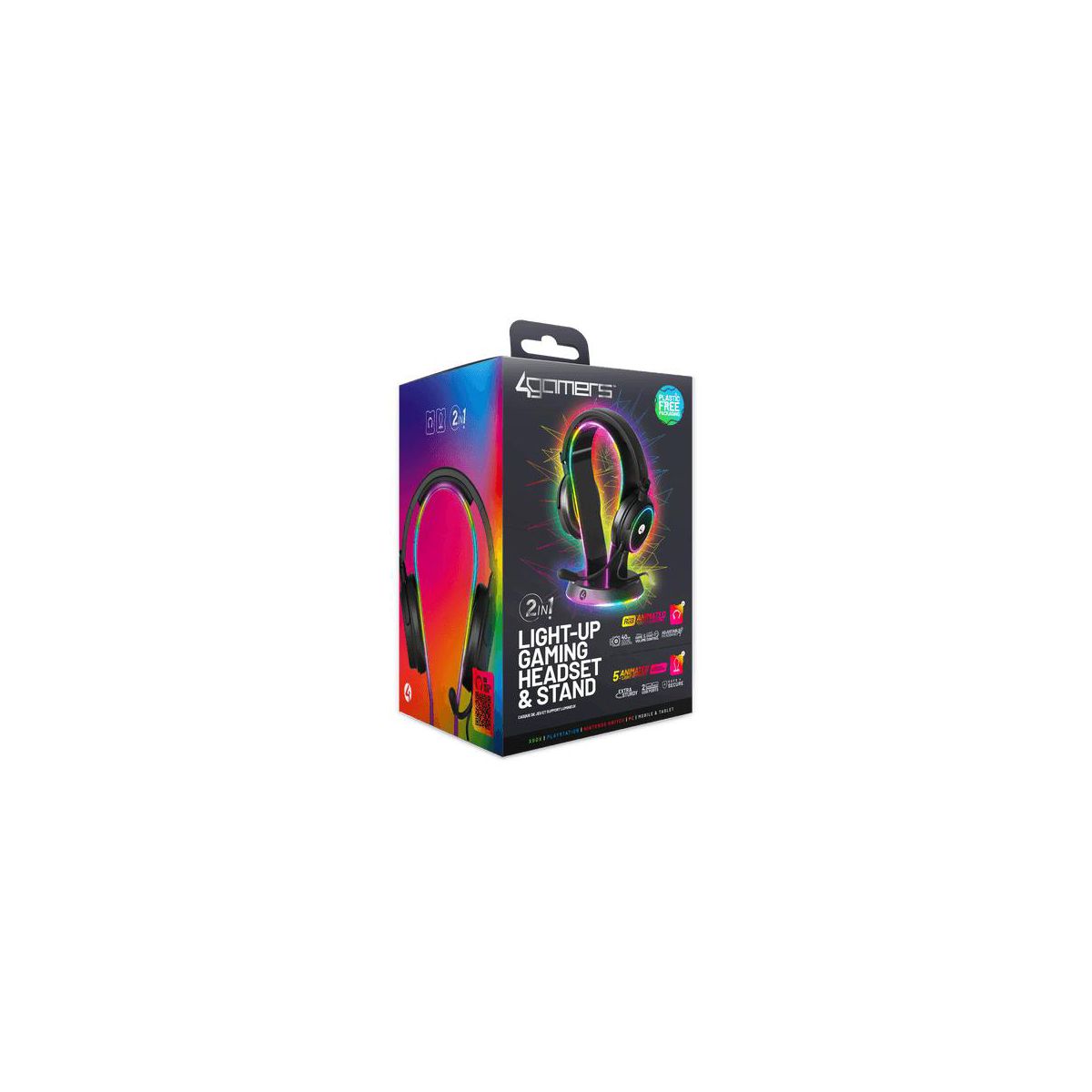 4Gamers Light-Up LED Gaming Headset & Headset Stand Bundle in Black PS4, PS5, XBOX, Switch, Switch 2, & PC