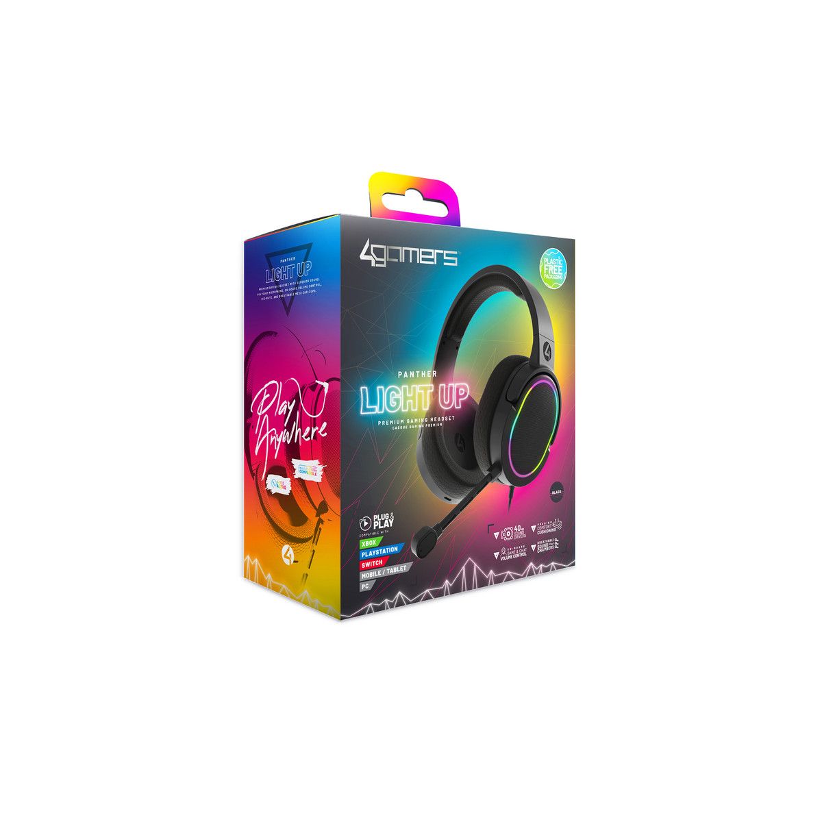 4Gamers PANTHER LED Light-Up Gaming Headset PS4 PS5 XBOX Switch & PC Black