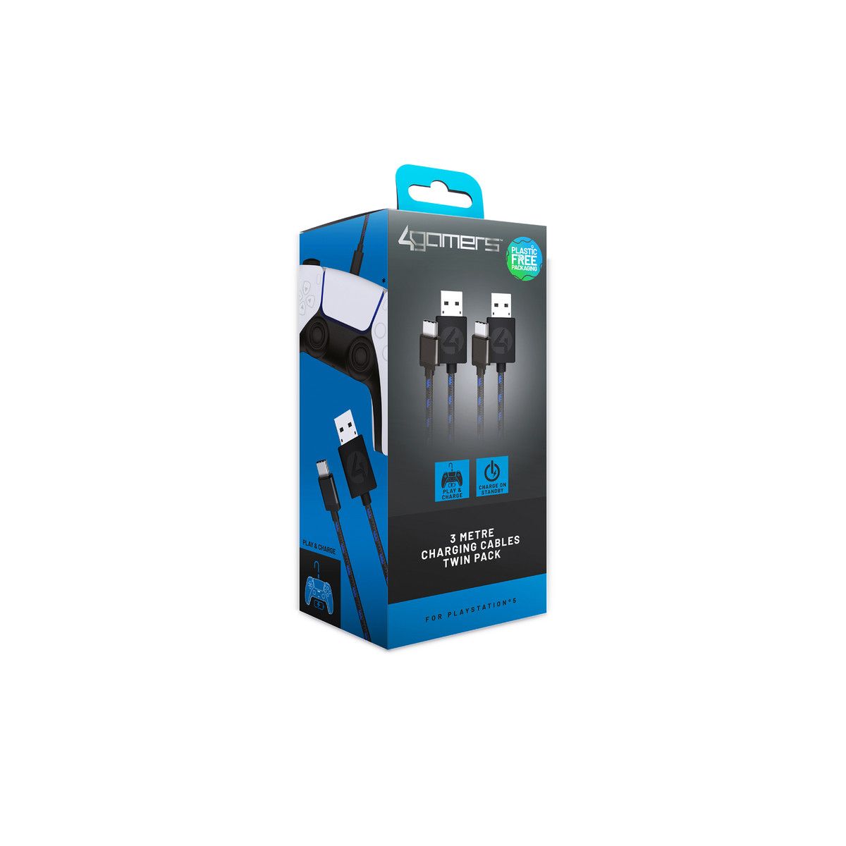 4GAMERS PS5 3m Superfast Play & Charge Cables Twin Pack
