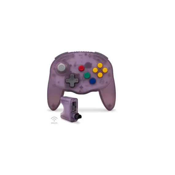The Hyperkin Admiral Premium BT Controller offers unmatched versatility, connecting seamlessly to N64®, Switch®, Switch® Lite, PC, Mac®, and Android devices. Enjoy wireless connectivity up to 30 ft. via the included BT dongle. This controller features a comfortable ergonomic design and responsive buttons, providing precise control. It includes a built-in lithium-ion battery that lasts for 6 hours of gameplay and recharges via the included Micro cable. Compatible with original, third-party, and standard storage memory cards, it allows you to back up or transfer game save data by inserting a memory card into the designated slot on the dongle.