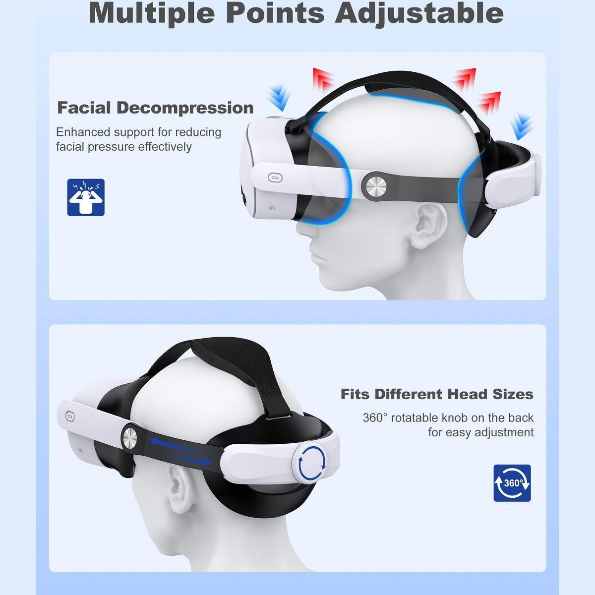 Beboncool Adjustable VR Head Strap for Meta Quest 2/3/3S Gaming Console VR Accessories