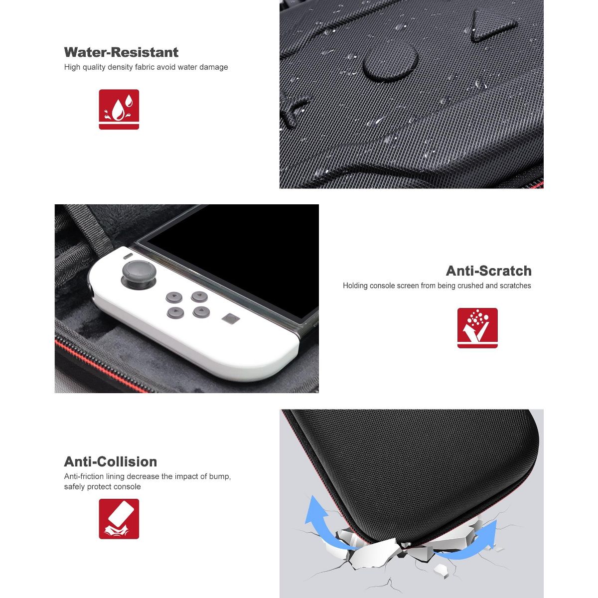 The Ultimate Beboncool Portable Gaming Accessory for Nintendo Switch! Perfect for travel, outdoor adventures, or daily use, this waterproof Switch travel case ensures military-grade protection for Gen 2, OLED, and original models. With durable, scratch-resistant material, it shields your console from bumps, spills, and dust. The organizational pockets keep accessories (controllers, chargers, earbuds) neatly stored, while the removable shoulder strap offers easy portability. Universal fit for all Nintendo Switch models, making it a versatile gaming bag for gamers of all ages. Choose from customizable patterns or sleek designs to match your style! Ideal as a holiday gift set or summer gaming kit. Lightweight yet tough—perfect for road trips, school, or casual play!